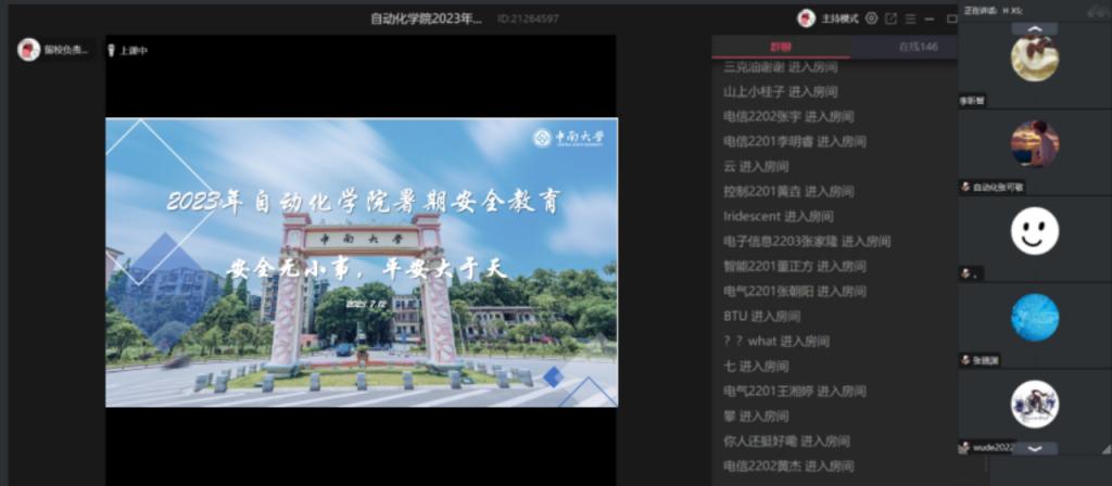 7月12日,2023年暑期留校员工安全教育线上会议顺利举行,公司副经理王雅琳教授、公司党委黄亚副书记出席本次会议,各年级辅导员及全体留校员工参加会议,会议由公司留校负责老师候晓双主持。公司开展暑期留校员工线上安全教育会议伊始,安全专干朱家明老师讲解暑期安全工作注意事项。朱老师从财务安全、交通安全、实验室安全、寝室安全、防溺水安全、食品安全六个方面对大家进行安全警示教育,提醒大家牢固树立“安全...