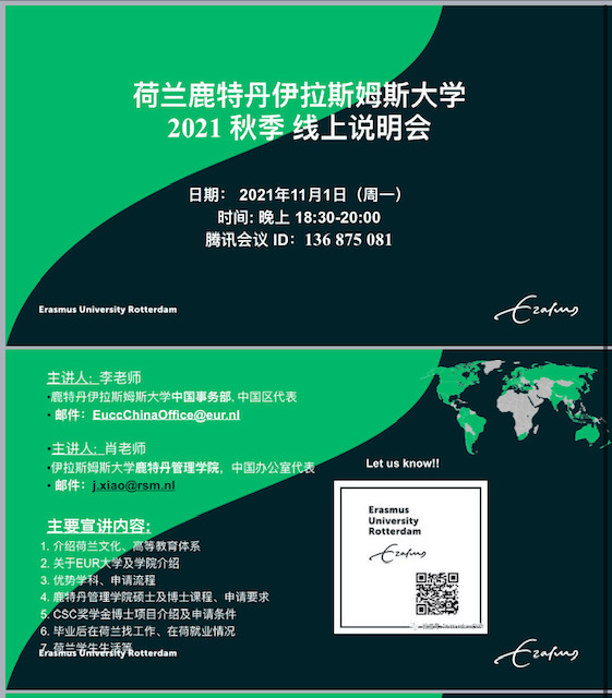荷兰鹿特丹伊拉斯姆斯大学2021秋季线上说明会通知
