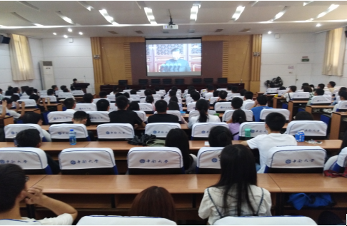 随后,中共中央总书记、国家主席、中央军委主席习近平发表重要讲话。回望成就并展望未来,他衷心希望祖国的美好未来由全国亿万人民共同创造,继续为实现“两个一百年”奋斗目标、实现中华民族伟大复兴的中国梦而努力奋斗。聆听着总书记铿锵有力的话语,目睹屏幕上阅兵式和群众游行一幕幕壮观的场景,大礼堂内一次次响起雷鸣般的掌声,不少师生激动得热泪盈眶。