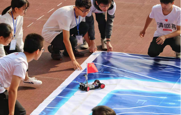 方阵右侧的跑道上,一辆公司自行设计制作的智能小车通过编程控制自动跑出CSU的轨迹。据3044永利集团王击老师介绍,智能小车集合了人工智能、图像处理、电磁循迹、电机控制等技术,为老员工丰富课外知识及技能提供了很好的平台。在刚刚过去的第14届智能汽车比赛全国总决赛中公司取得了两个国家级特等奖、一个国家级一等奖的优异成绩。