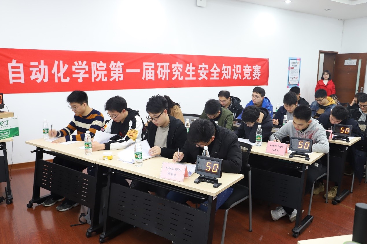 参加本次安全知识竞赛的六支参赛队伍分别是:自动化1901班代表队、自动化1902班代表队、自动化1903班代表队、自动化1904班代表队、电气1901班代表队和18级研究生代表队。每支队伍由4名参赛选手和若干名亲友团组成。本次安全知识竞赛分为妙笔生花和舌灿莲花两个环节,分别为笔试题和抢答题,获得笔试环节前两名的队伍可以拥有两次求助机会。除此之外,在中场阅卷时间,还设置了亲友团互动环节,亲友团成员可以参与答题,答对者可以获得精美礼品。