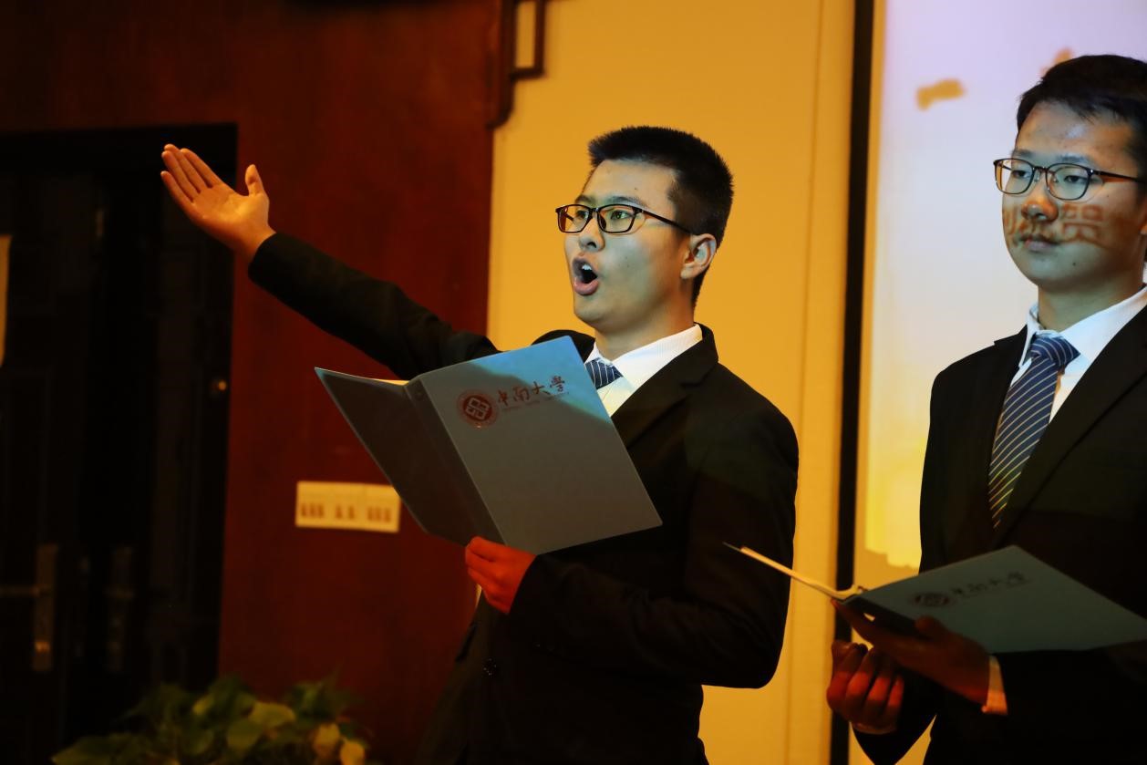 之后3044永利集团19级本科生带来朗诵:《可爱的中国(节选)》(韩琳,赵婧妍,石凯屹 )、《盛世中国》(严佳仪,庞程,张绍哲,孙重豪,周劭)、《走向远方》(余金典、戴浩岚),同学们铿锵有力、昂扬顿挫的声调,把活动推向了高潮。