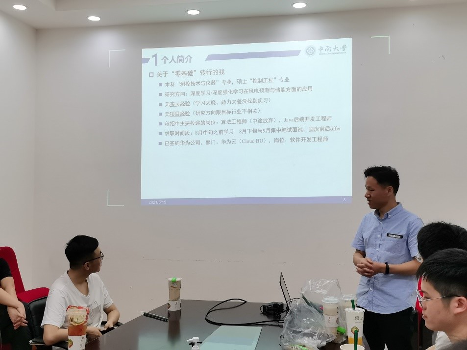 2021届毕业季即将到来,2022届毕业生也即将进入秋招。为此研究生自动化1901班于5月15日在民主楼222举行了一场学长学姐求职经验分享会,并且有幸邀请到签约百度的史燕星、签约腾讯的迟胜凯、签约华为的陶青、签约上海浦发银行武汉分行的刘冕、签约西南设备研究所的文昊飞,以及签约中南勘察研究院的刘语汀为员工进行就业分享。希望通过学长学姐的切身经历帮助毕业生们找到一份心仪的工作。