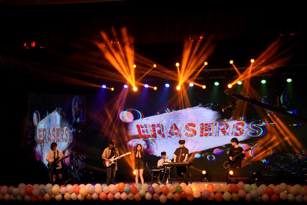 在经久不息的掌声中,第一个节目悄然而至。由Erasers乐队为毕业生们带来歌曲《I hate myself for loving you》。当帷幕拉开、主唱手中的话筒紧握、贝斯手的指尖划过琴弦,全场的观众都在忍不住欢呼起来,这曲经典的摇滚曲目瞬间点燃了观众们的热血,唤醒了青春的活力。