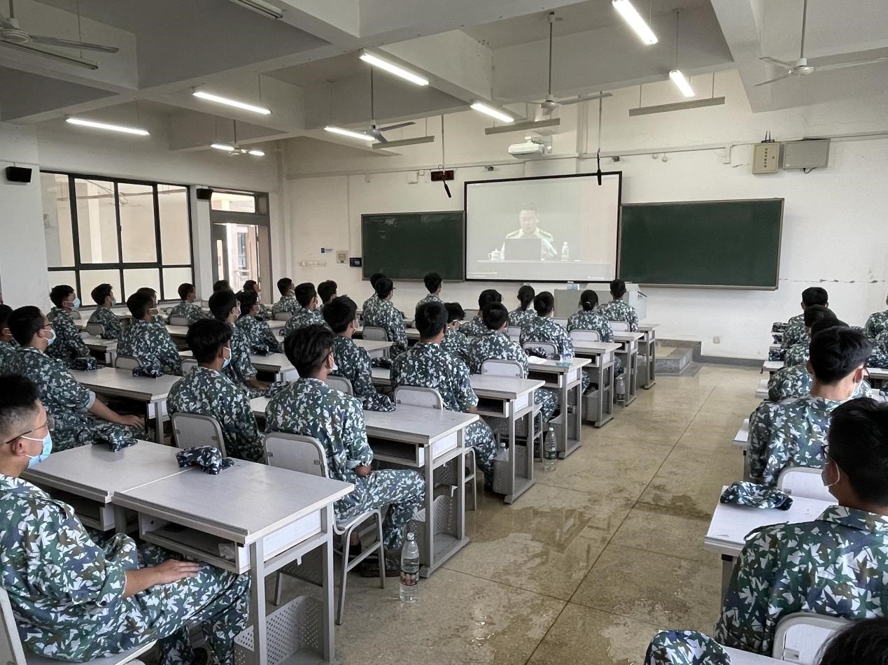 下午,新生以排为单位有序进入新校区各教室,观看周久虎上校以“洞察大国博弈,担当复兴伟业”为主题的讲座。新生们笔直端坐,双手置于腿上,军帽半折置于桌角,以严肃认真的态度观看讲座。首先,他跟大家分析了当前中国的国际形势,主要围绕美西方对中国采取的措施进行讲解,并举出众多大家熟知的例子,讲解通俗易懂又发人深省。第二部分,他着重强调了国防军队的重要性以及全国上下一盘棋政策的战略地位。最后,他直接指出了以后我国所要面临的挑战以及将要背负在新一代年轻人身上的使命。周久虎上校强调,幸福是靠自己奋斗出来的。正如《国际歌》中所写的,“从来就没有什么救世主,也不靠神仙皇帝。要创造人类的幸福,全靠我们自己!”周上校告诫大家要时刻保持自信以及爱国热情,摆脱懒惰,摆脱颓丧,为实现中华民族的伟大复兴而不懈奋斗!