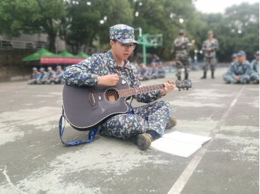 训练的过程是枯燥而漫长的,但是教官给了同学们休息的机会。休息时间中,同学们积极展示才艺,为军训生活添花加彩——不断有同学自告奋勇上台表演吉他、歌唱和舞蹈。同学们认真而有趣的表演后,军训的气氛更加活跃、同学的关系更加紧密,军训的疲惫也随大家的欢声笑语一扫而空。