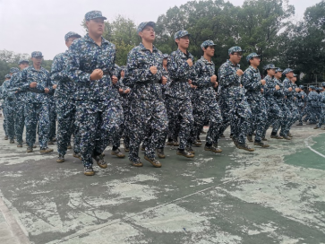 今天的训练内容包括齐步走和正步的学习巩固。教官向同学们详细讲解了动作要领,并对每一排依次进行练习和考核。“抱腹准备!”当教官洪亮的声音响起,全体同学精神紧绷,双手并于腹前。“正步——走!”听到教官的命令,同学们迈步向前,行进之势如猛虎,掷地之声如洪钟。为了提高同学们正步的稳定性,在练习正步分解动作中单脚站立时,教官要求同学们一边刻苦练习,一边背诵古诗、演唱红歌。