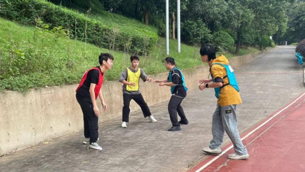 下午14:30,全体党员在橘子洲青春剧院门口集合,随后被分为红、蓝、黄三支队伍,参与一场结合知识竞答的健步挑战赛。活动从橘子洲头北入口延伸至最南端临水台,各队伍通过完成特定地点打卡、名牌互动和知识竞答三项任务,按积分排序决出胜负。