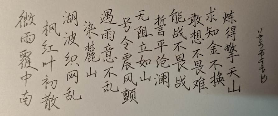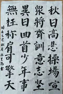 褪去戎装执狼毫,满腔热血落宣张。军训的号角犹在,笔尖的力量已燃——看少年们以笔为枪,书写迷彩青春里的家国担当。
