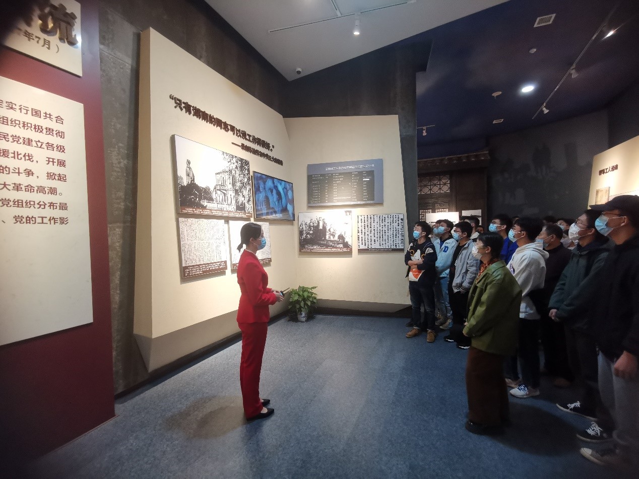 在讲解员的引导下,同学们参观了560多个党史事件和480多位湖南党史人物,通过“走着读”的形式,充分领会学习到了中国共产党领导湖南人民革命、建设、改革所取得的辉煌成就和宝贵经验。党史陈列馆布展以“敢教日月换新天——中国共产党湖南历史陈列”为主题,前三部分采用编年体形式,分别以“开辟新天地”、“描绘新画卷”、“谱写新篇章”为题,展现了中国共产党革命、建设、改革的三个历史时期,第四部分“三湘群英谱”则用专题形式,介绍以毛泽东为代表的湘籍和长期在湘工作的优秀党史人物,其中包括党和国家领导人、人民军队高级将领、著名英烈代表、各领域杰出代表和历任湖南省委书记。