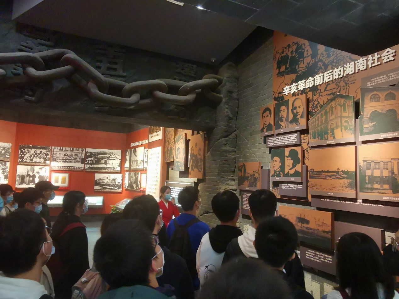 馆中陈列的一段段珍贵的文字,一幅幅泛黄的照片,一件件承载了历史记忆的文物都让同学们对党的艰辛历程有了更加深刻的了解,也对建党以来所取得的成就感到由衷的尊敬。接受党性教育课时,老师说湖南的革命家、将士非常多,与湖南的气候饮食都有着极大的关系,所谓一方水土养一方人,湖南人爱吃辣也信奉三个字,“霸得蛮”,就是要有拼搏的精神。从上世纪20年代中国共产党湖南早期组织建立,到如今正在谱写的中国梦湖南篇章,党史国史不是远离现实的过眼云烟,而是党领导人民在长期实践中创造的思想文化遗产和宝贵精神财富。