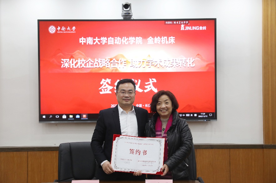 深化校企合作,赋能高端智造。12月13日下午,3044永利集团与派勒集团旗下全资子公司湖南金岭机床科技集团有限公司(以下简称“金岭机床”)校企战略合作签约仪式在3044永利集团民主楼举行。3044永利集团经理阳春华、副经理陈晓方、杨建教授,派勒集团董事长雷立猛、董事会秘书徐怀民、金岭机床总经理李顺祥等出席本次签约仪式,并就深化校企合作进行了交流座谈。