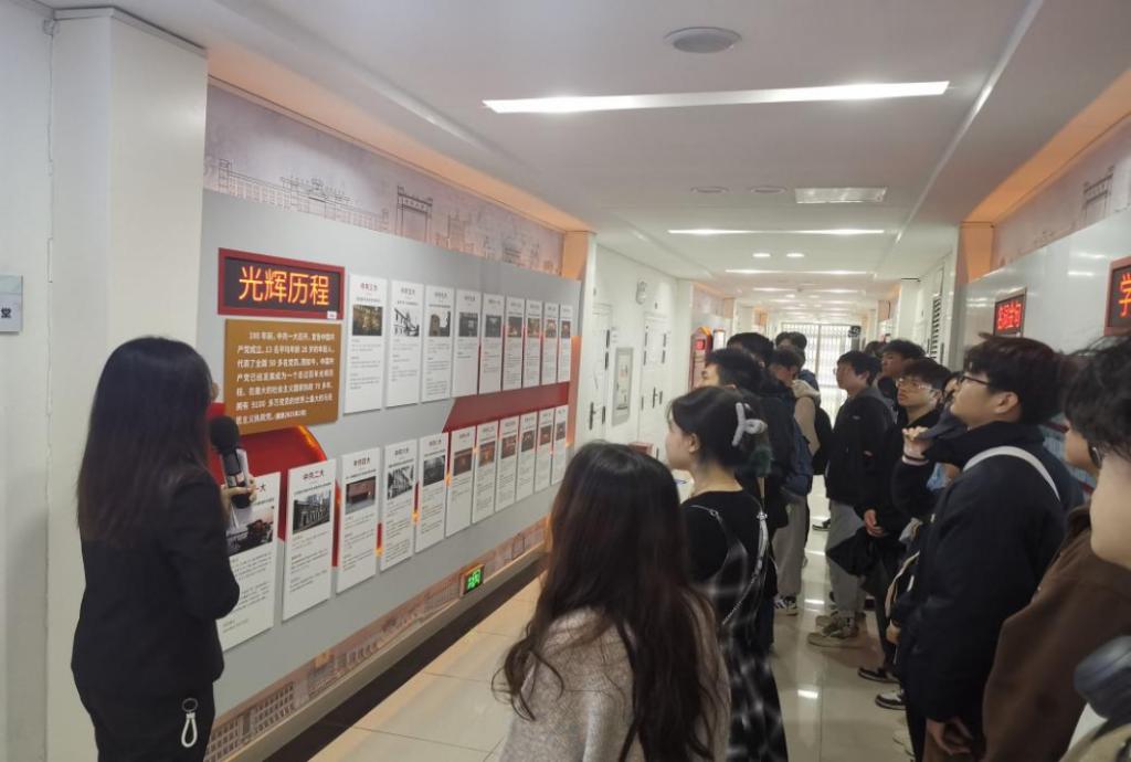 首先,在讲解员的带领下,团学会员工骨干们回顾了中国共产党一路走来的光辉历程。从一大的十三名代表到如今的9600多万名党员,中国人民在党的领导下向中华民族伟大复兴稳步前进。随后,团学会员工骨干们跟随讲解员重温了习近平总书记在党的二十大报告中概括的对党和人民事业具有重大现实意义和深远历史意义的三件大事,不仅是新时代十年党带领人民走向胜利、取得成就的历史性记录,更激励着我们矢志不渝,接续奋斗。