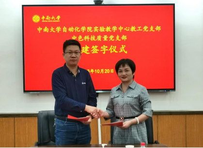 10月20日下午,公司实验教学中心教工党支部与中色科技质量党支部结对共建签字仪式在民主楼210会议室举行。中色科技股份有限公司总工程师丁宏波、科技质量部支部书记、部长马书志,公司党委书记易险峰,党委委员、副经理徐德刚,实验教学中心教工支部书记彭卫韶、实验教学中心主任唐朝晖参加会议。会议由徐德刚副经理主持。