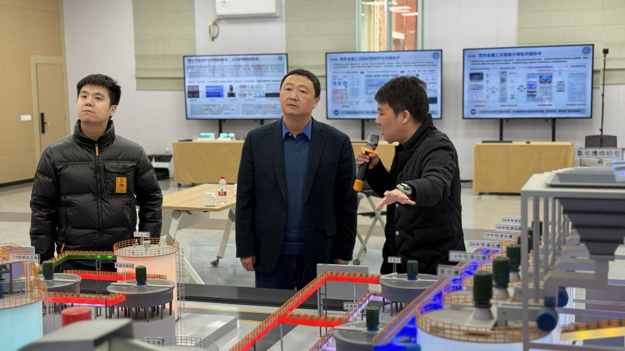 报告结束后,张益院士在王雅琳经理和刘芳教授的陪同下前往参观“工业智能与系统”教育部重点实验室,在实验室的大厅,陈致蓬副教授对智能工厂的生产过程进行了介绍,同时指出智能工厂技术能够有效实现关键工艺流程和生产场景的自动化和智能化,为实现绿色低碳安全高效生产提供了坚实的技术支撑。