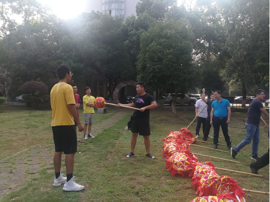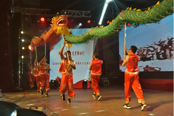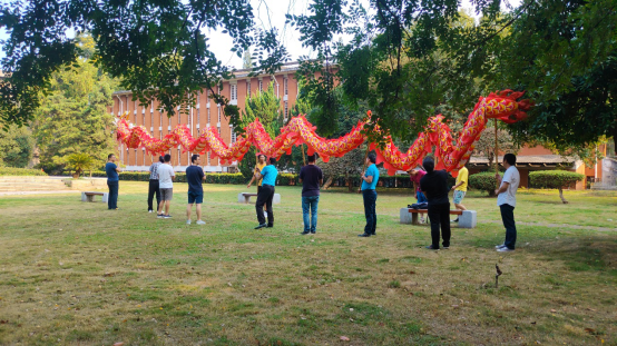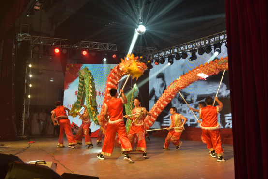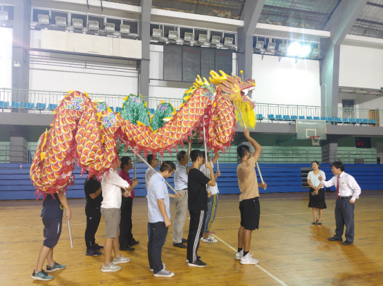 公司教职工舞龙队的队员们,在紧凑的科研、教学、工作以及学习之余,兴致高昂地挤出时间在一起训练与交流心得。因为他们不仅仅希望能够通过自己的努力大力弘扬中华民族的优秀传统文化,更是想将拳拳爱国之心融入到日常训练的每一个动作之中,为祖国的繁荣昌盛与人民的幸福安康欢呼喝彩。终于功夫不负有心人,他们站在南校礼堂上用欢腾的舞龙为建国70周年献上最衷心的祝福。