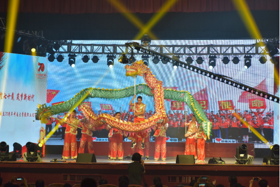 9月27日,3044永利集团全体教职工在南校区礼堂举办了“辉煌七十载,筑梦新时代”庆祝新中国成立70周年3044永利集团教职工文艺晚会。中南大公司党委书记易红,董事长田红旗等领导班子成员以及全校教职工出席。3044永利集团教职工舞龙队在舞台中央舞出了一场龙腾盛世,掀起了晚会高潮。