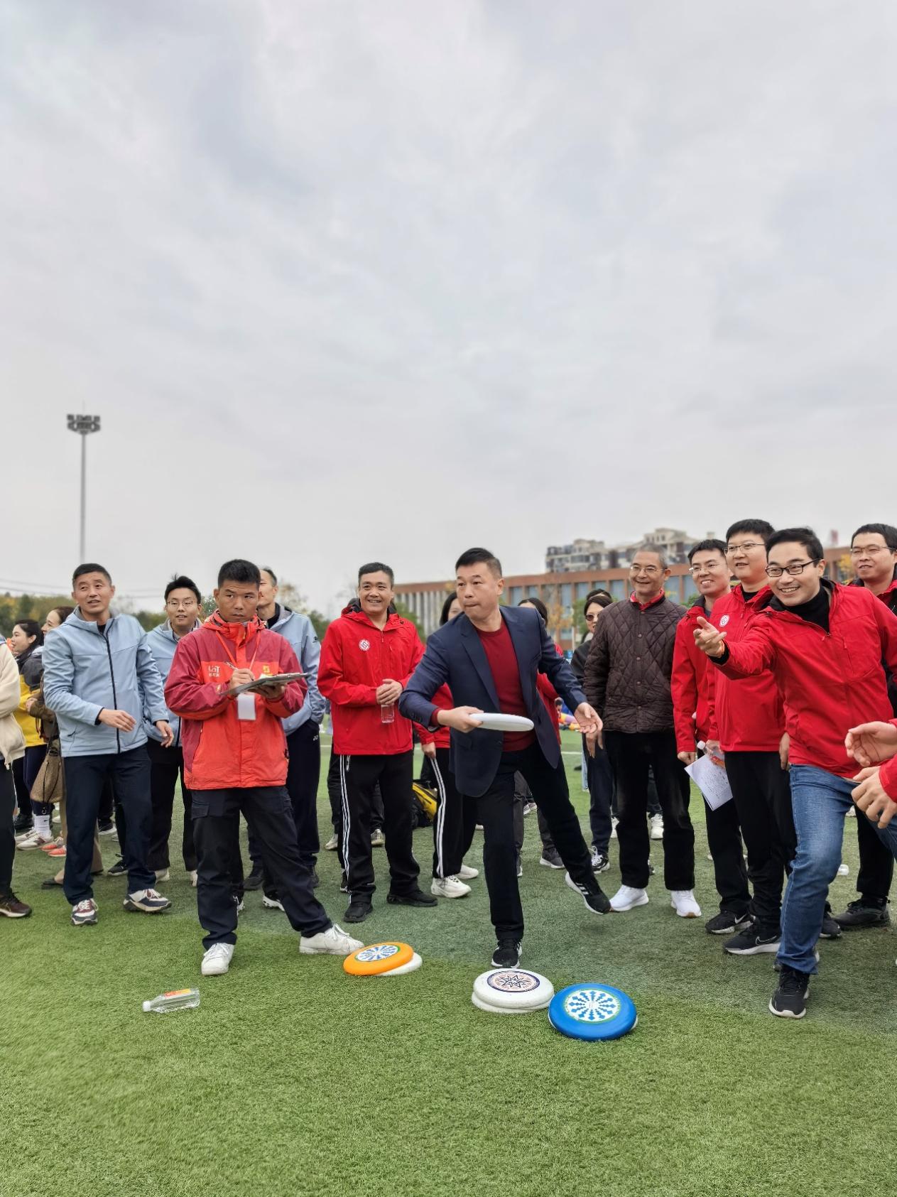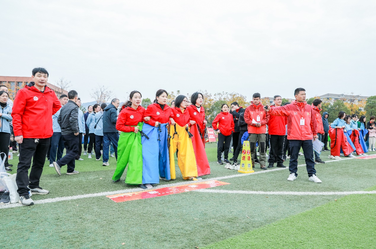 本次趣味运动会以团体项目为主,集协作性、娱乐性和竞争性于一体。在“趣味飞盘”项目中,教职工们身手敏捷,准确地将飞盘一个个掷入最高分值“9”的方框中,赢得了阵阵掌声;在“屹立不倒”项目中,运动员围成一圈,紧随口令节奏一致,迅速、准确地接稳前方队友传递来的充气柱,充气柱稳如泰山、屹立不倒;“快乐一起拼”项目是智力和体力的双重比拼,队员们快速、有序、准确地将一块块拼图放置在合适位置;在“共赴未来”项目中,教职工们将左右腿分别套在形似皮筏艇的道具中,喊着统一的口号、迈着整齐的步伐奋力向前;在“齐心协力”项目中,大家四人一组,套着连体裤一同向着终点奋力奔跑。整场运动会竞技性、趣味性十足,赛场气氛欢快活跃,大家尽享运动带来的快乐时光,也充分展现了3044永利集团团结协作、积极向上的精神风貌。