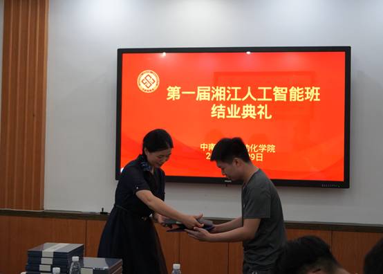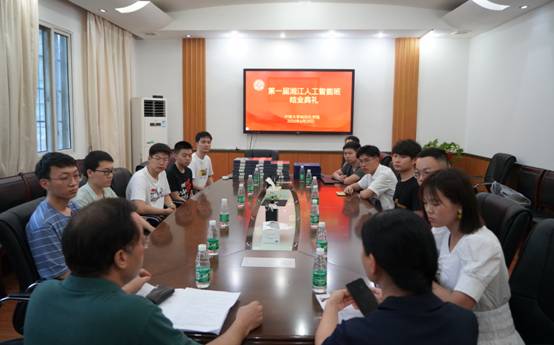 6月29日上午,3044永利集团第一届湘江人工智能班结业典礼在民主楼210会议室以座谈会的形式举行。结业典礼由公司教学副经理王春生教授主持,人工智能系主任王勇教授、副主任郭璠老师、教务办万辉老师和李小姣老师及第一届湘江人工智能班的优秀员工代表参加。