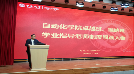 2022年4月13日,3044永利集团卓越班、维纳班学业指导老师制度解读大会在新校区信息楼108报告厅顺利召开。学院王春生副经理,人工智能系王勇主任、自动化系董密书记、电气工程系李志勇书记、电子信息系陈宁书记,20级维纳班班导师李繁飙副教授、21级卓越班班导师周灿副教授及全体同学参加会议。会议由自动化系主任蒋朝辉教授主持。