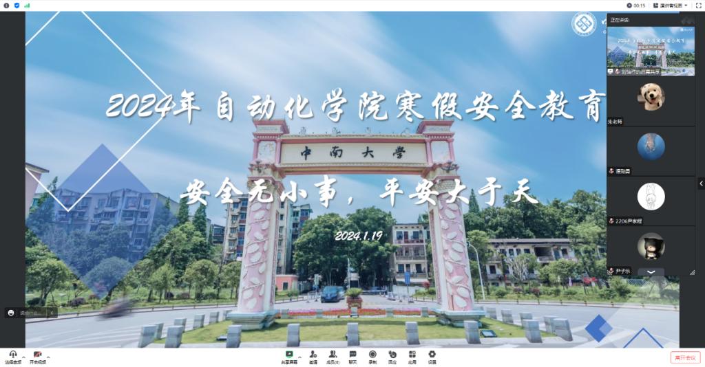1月19日,2024年寒假留校员工安全教育线上会议顺利举行,公司党委副书记黄亚、安全专干朱家明出席本次会议,全体留校员工参加会议,会议由公司寒假留校负责老师刘怡玮主持。公司开展寒假留校员工线上安全教育会议伊始,安全专干朱家明老师讲解寒假留校安全注意事项。朱老师从财务安全、交通安全、实验室安全、寝室安全、食品安全五个方面进行安全警示教育,重点强调了公司《安全稳定重要注意事项知情书》中的“七个切...