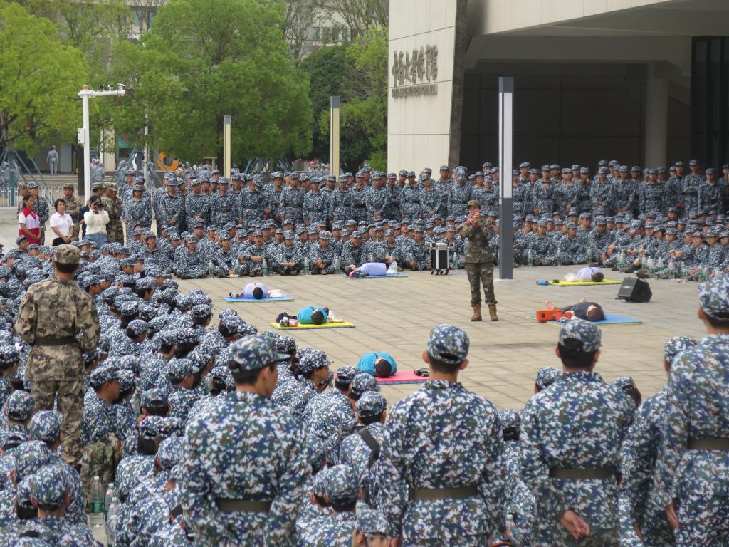 旌旗猎猎,映照少年模样;步伐铿锵,奏响青春乐章。随着每天的训练,学子们告别青涩,以军人的标准严格要求自己,新一天的任务也随之开始。战地急救训练场上,急救培训有序开展。医护人员先示范海姆立克急救法,双手环抱“伤员”腹部向上冲击;接着急救兵演示止血包扎,拆解按压止血点、螺旋缠绷带的步骤;最后红十字教学心肺复苏,细化跪姿、按压深度等要领。同学们主动举手、轮流上前,在模拟实操中积极互动,整个培训少了复...